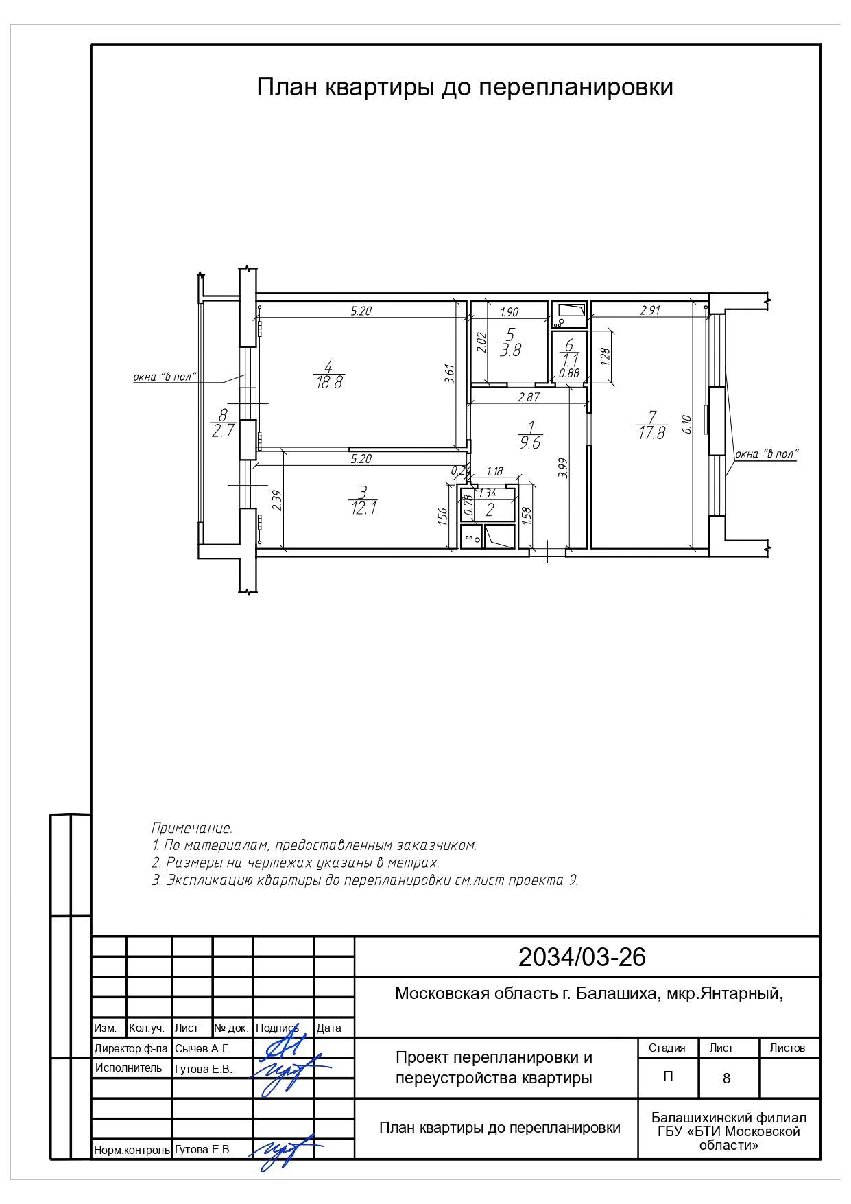 Разработанный проект выполнен в соответствии с актуальными нормами и правилами, предъявляемыми к перепланировке в многоквартирных жилых домах, и готов к передаче заказчику для последующего согласования в установленном порядке.